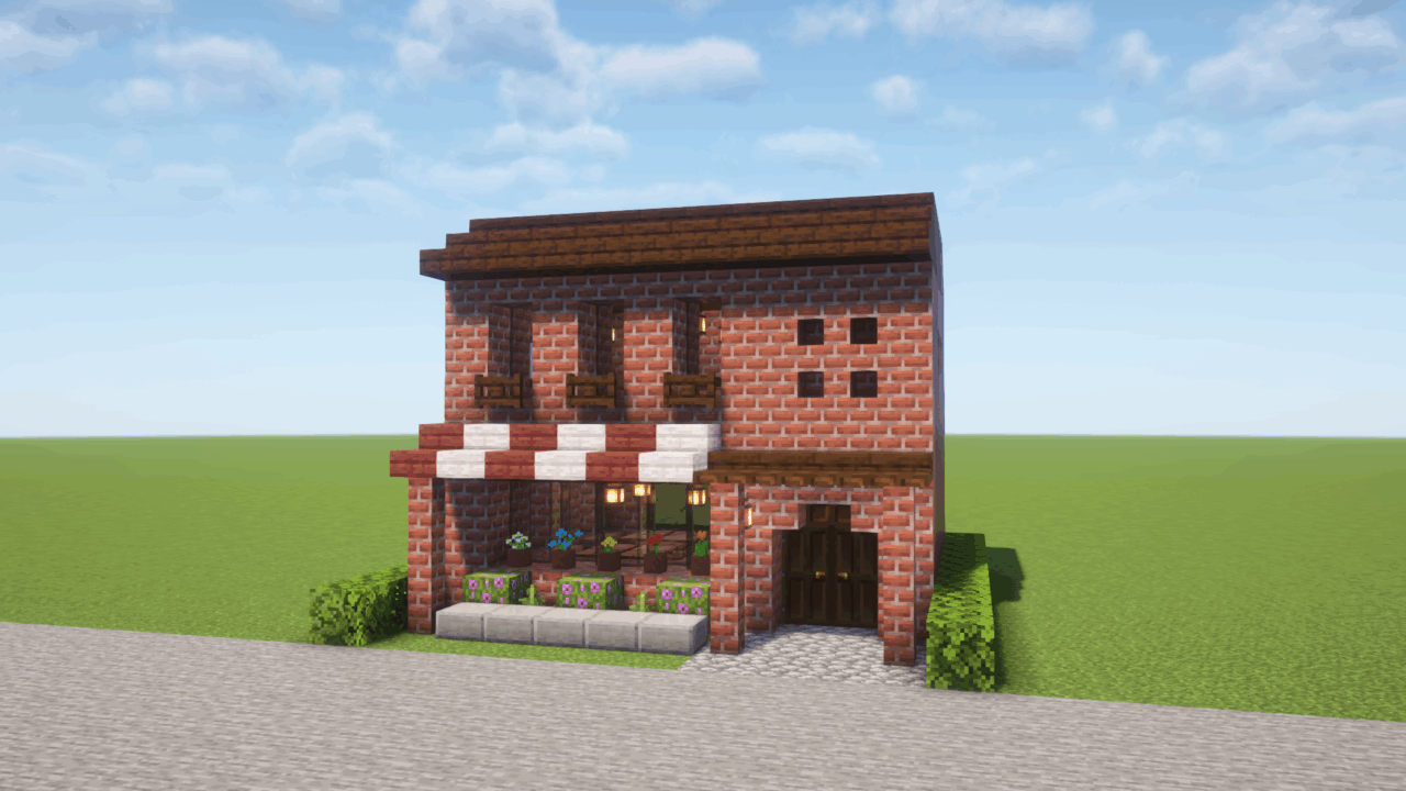 マイクラ建築:コンパクトでおしゃれなレンガ屋根の小さなおうち。簡単10×10。No.60SOUのマイクラログ。