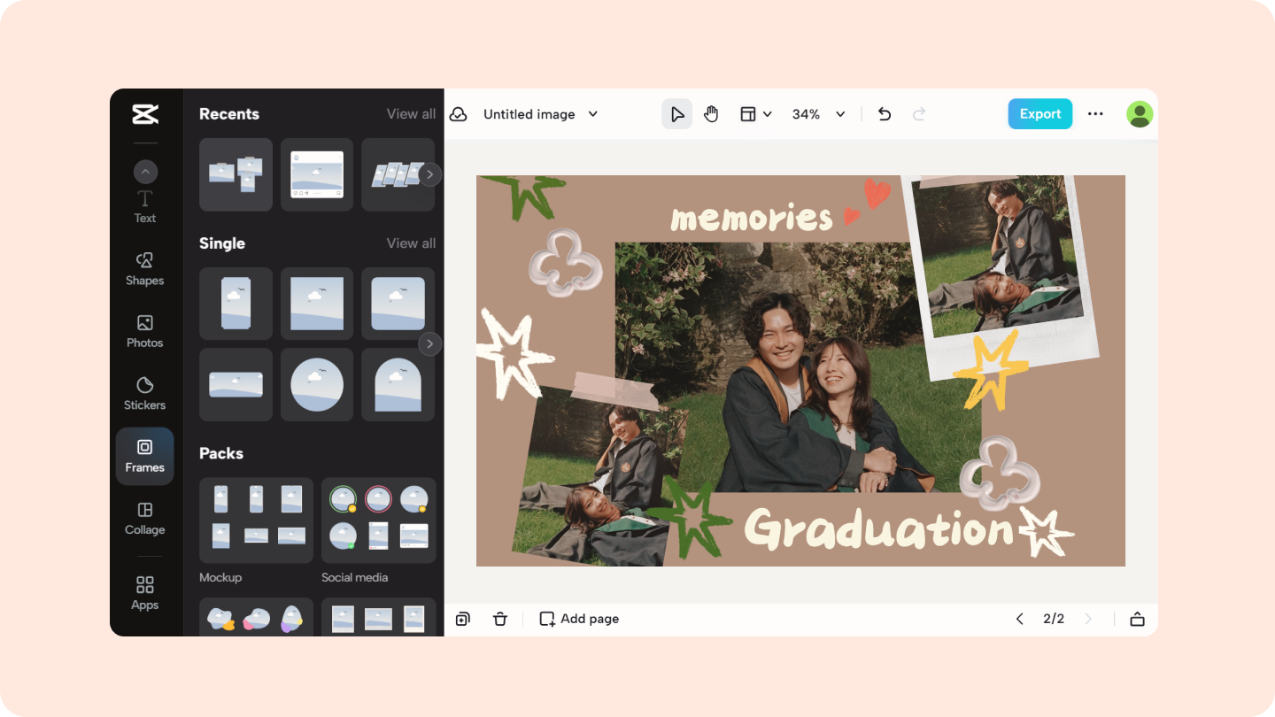 写真にフレームを追加: CapCutを使って写真に芸術的なタッチを加えよう。