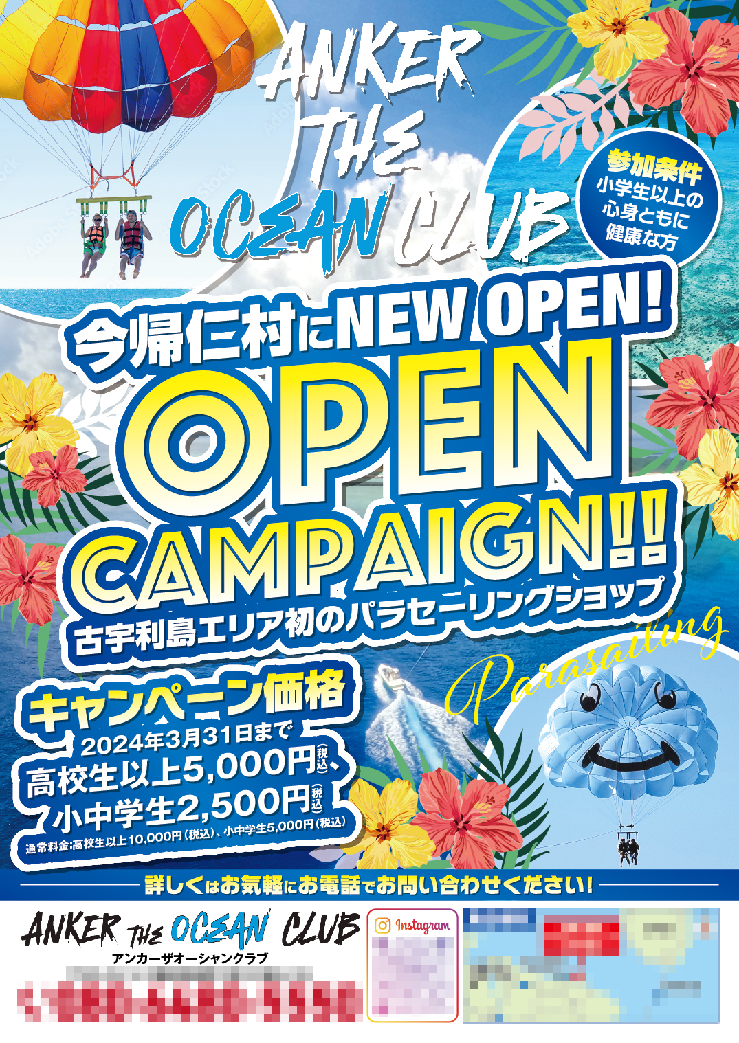 マリンスポーツショップオープンキャンペーンチラシのご依頼 - I.G.WORKSチラシ・パンフレットのデザイン制作。