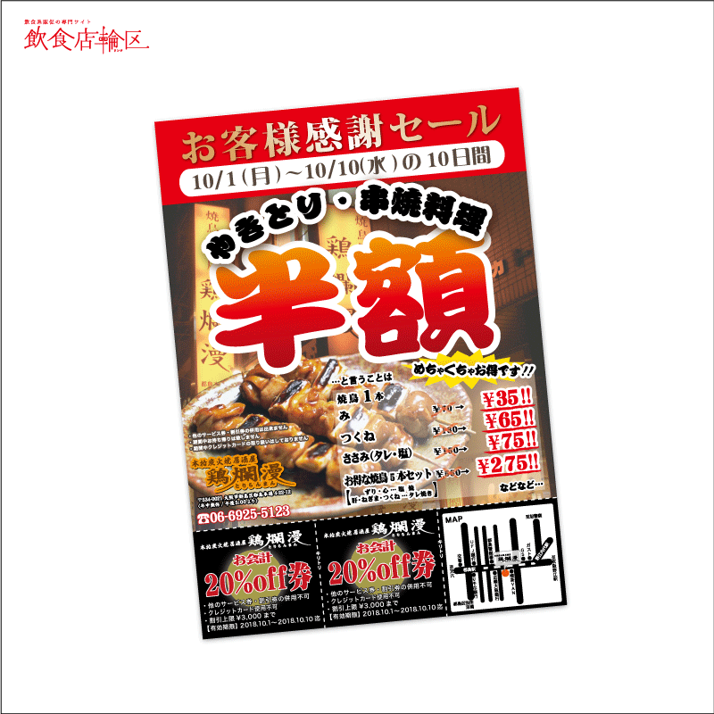 半額祭りキャンペーンチラシ飲食店のチラシデザイン作成・印刷なら飲食チラシ制作.com。