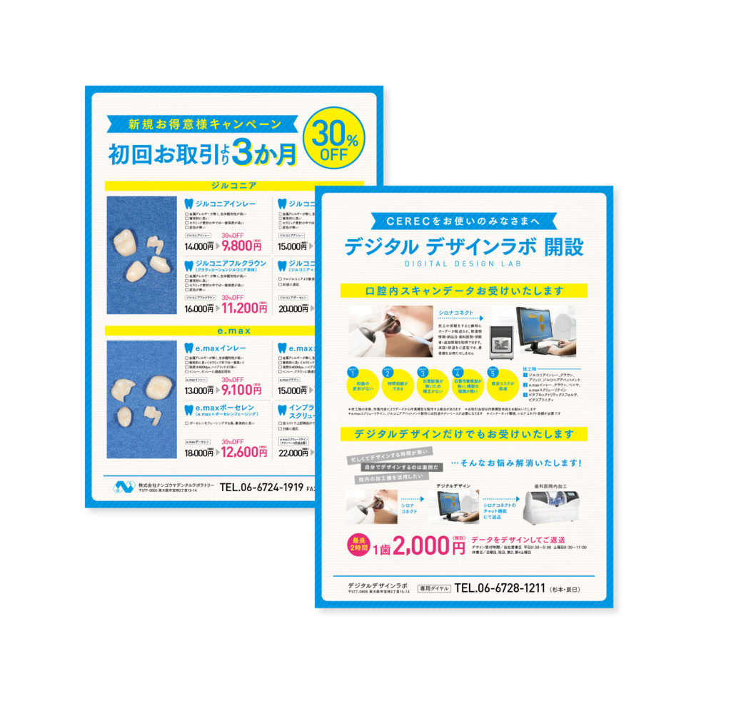 歯科技工所様 キャンペーンチラシデザイン大阪・東京のデザイン会社 タイタン・アートブランディング・WEB・パッケージデザイン ・パンフレット・カタログ制作。