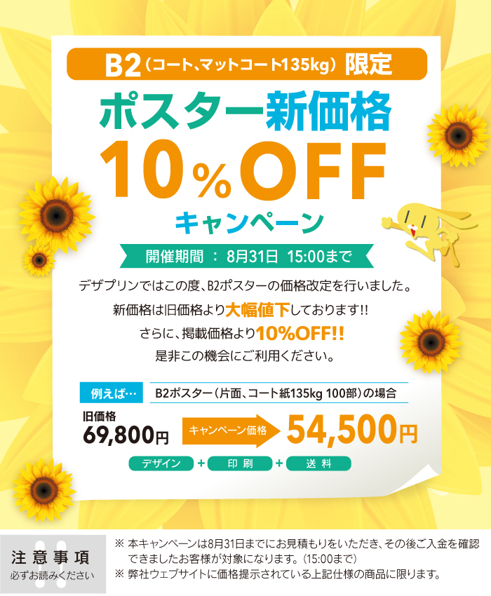 ポスター新価格 10%OFFキャンペーンチラシデザイン印刷ならデザイン印刷通販デザプリン。