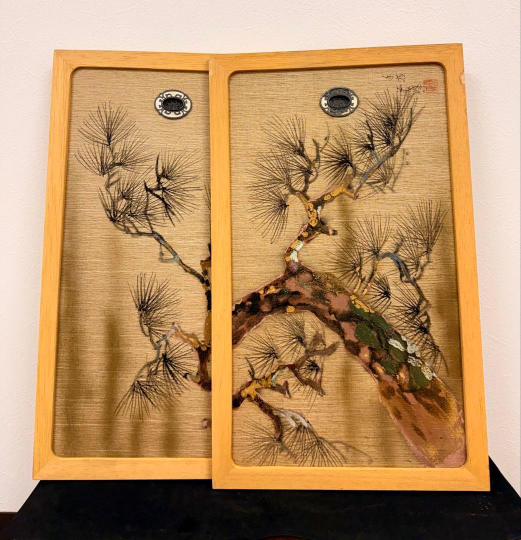 日本画 松のデザイン 絹素材 木製フレーム アンティーク ヴィンテージ 古材 額縁 フレーム おしゃれ 額 日本画 ポスター アクリル板 大正ロマンアンティーク 家具 和モダン 木製 天然木 フォトフレーム・写真立て ワジン 通販 16982628Creema クリーマ。