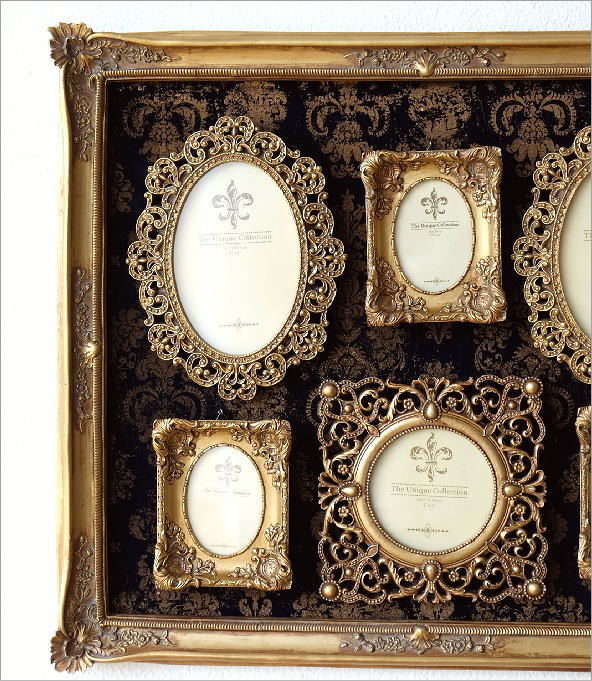 フォトフレーム 壁掛け 多面 複数 おしゃれ ヨーロピアン アンティーク エレガント 丸 小さい ミニ 丸 楕円 6枚 6窓 ファミリーフォトフレームクラシックebn9036ギギliving。