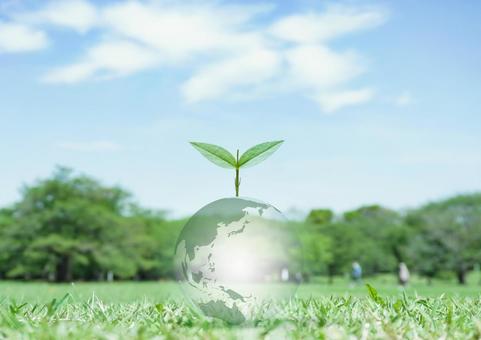 エコを考える地球環境世界地図草水自然未来 - クリップアートイラストフリー素材。