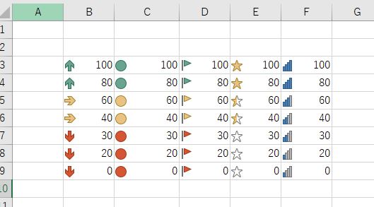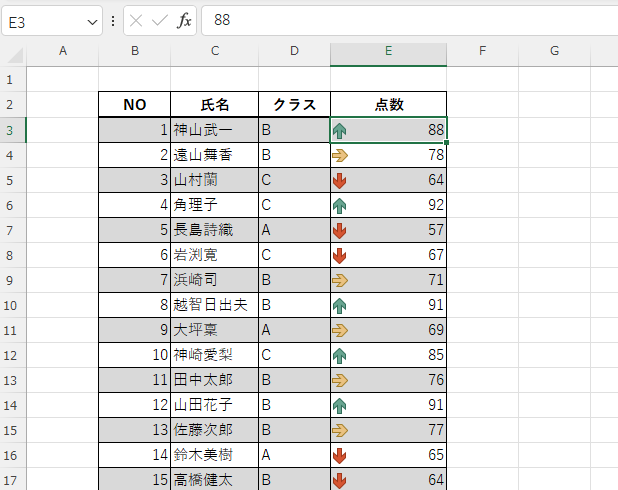 エクセル アイコンセットはカラフルな視覚効果で値の増減が分かりやすい。