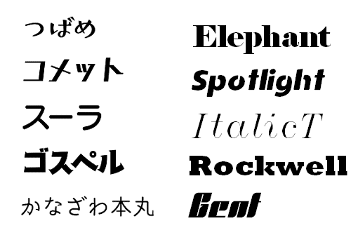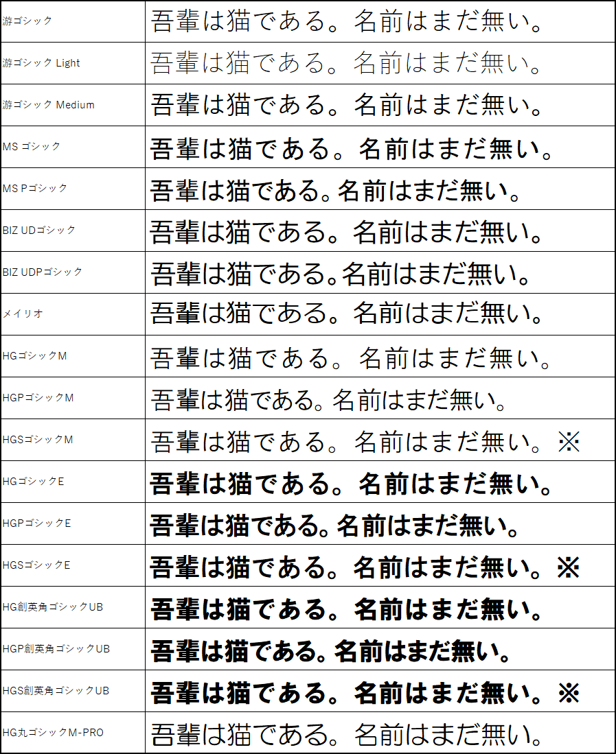 ゴシック体Microsoft Officeで使える日本語フォントの見本。