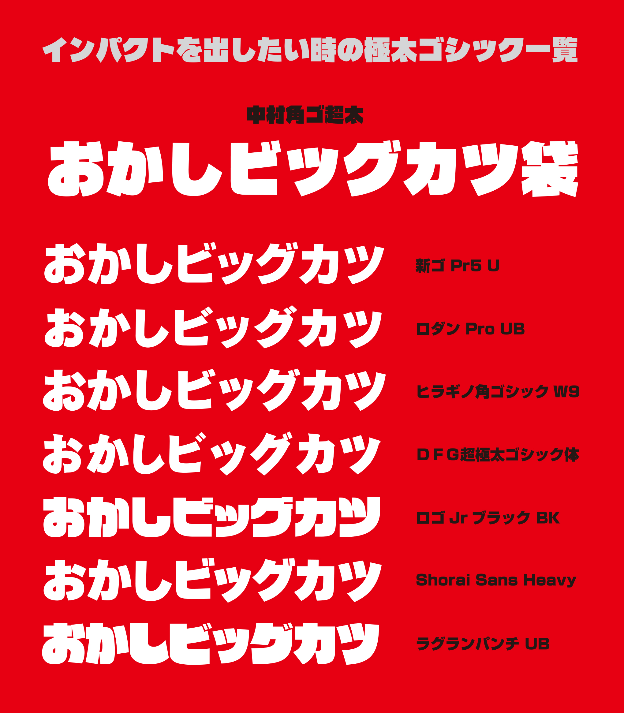 フロップデザイン⌘フォントデザイナー on X: "いざという時に役立つ極太ゴシック体一覧。もっとフォントにインパクトが欲しいと言われたときに、お使いください。https:t.co tDWdMZTiVf"X。
