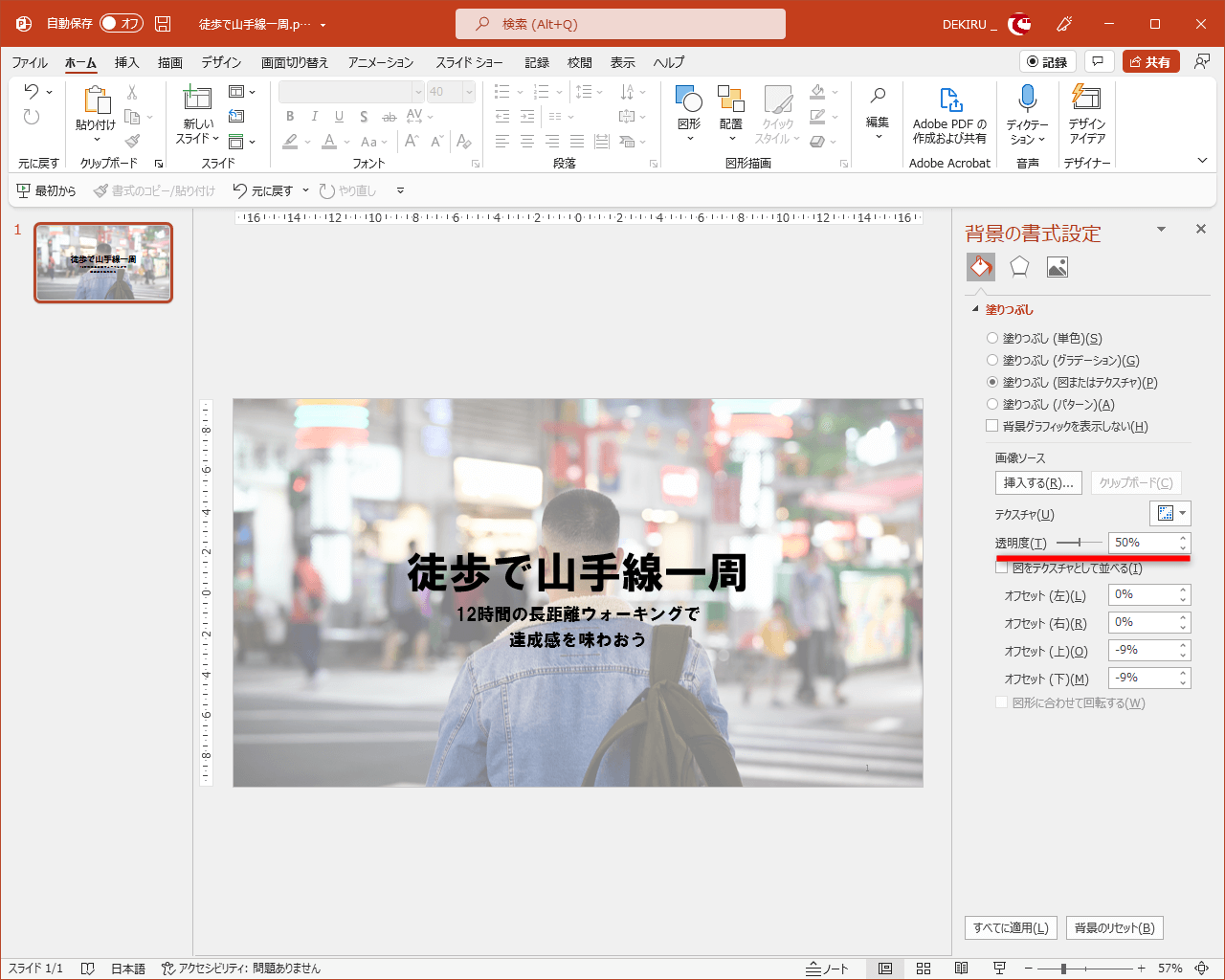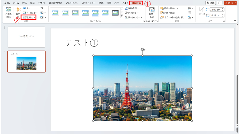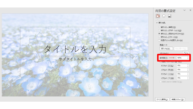 PowerPoint「画像の透過」透明度を下げる2つの方法PPDTP。