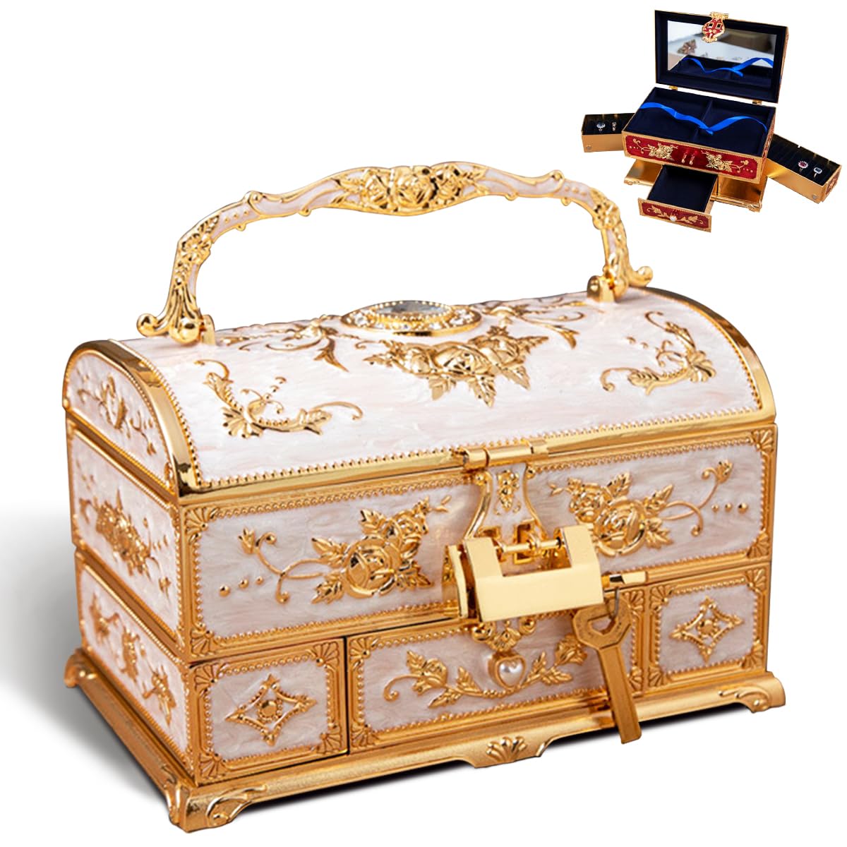 ジュエリーボックス アクセサリーボックス メイクボックス ジュエリーケース アクセサリーケース アクセサリー収納 アンティーク 中世 おしゃれ 高級感西洋風 プレゼント ギフト - メルカリ。