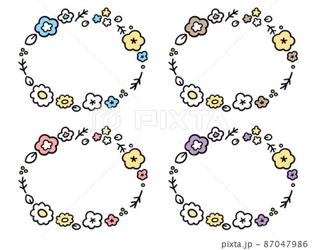 春の花のかわいいゆるい手書き風フレームイラストのイラスト素材87047990- PIXTA。