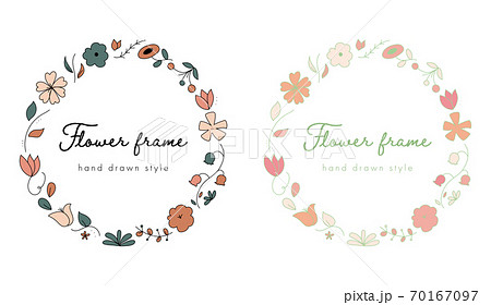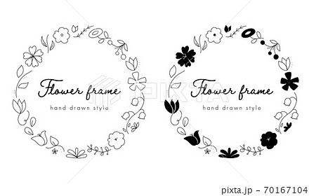 手描きの花の丸いフレームのセット おしゃれ かわいい 背景 シンプル 植物 葉 枠 タイトルのイラスト素材70167104- PIXTA。
