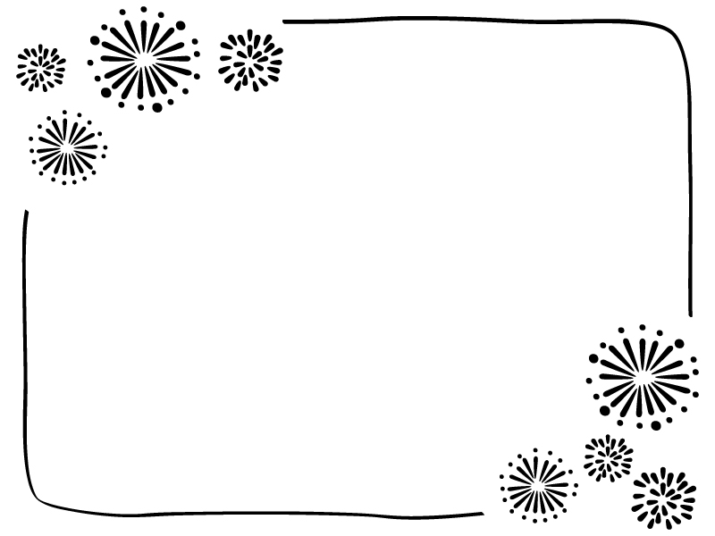 花火の手書き風囲み白黒フレーム飾り枠イラスト無料イラスト かわいいフリー素材集 フレームぽけっと。