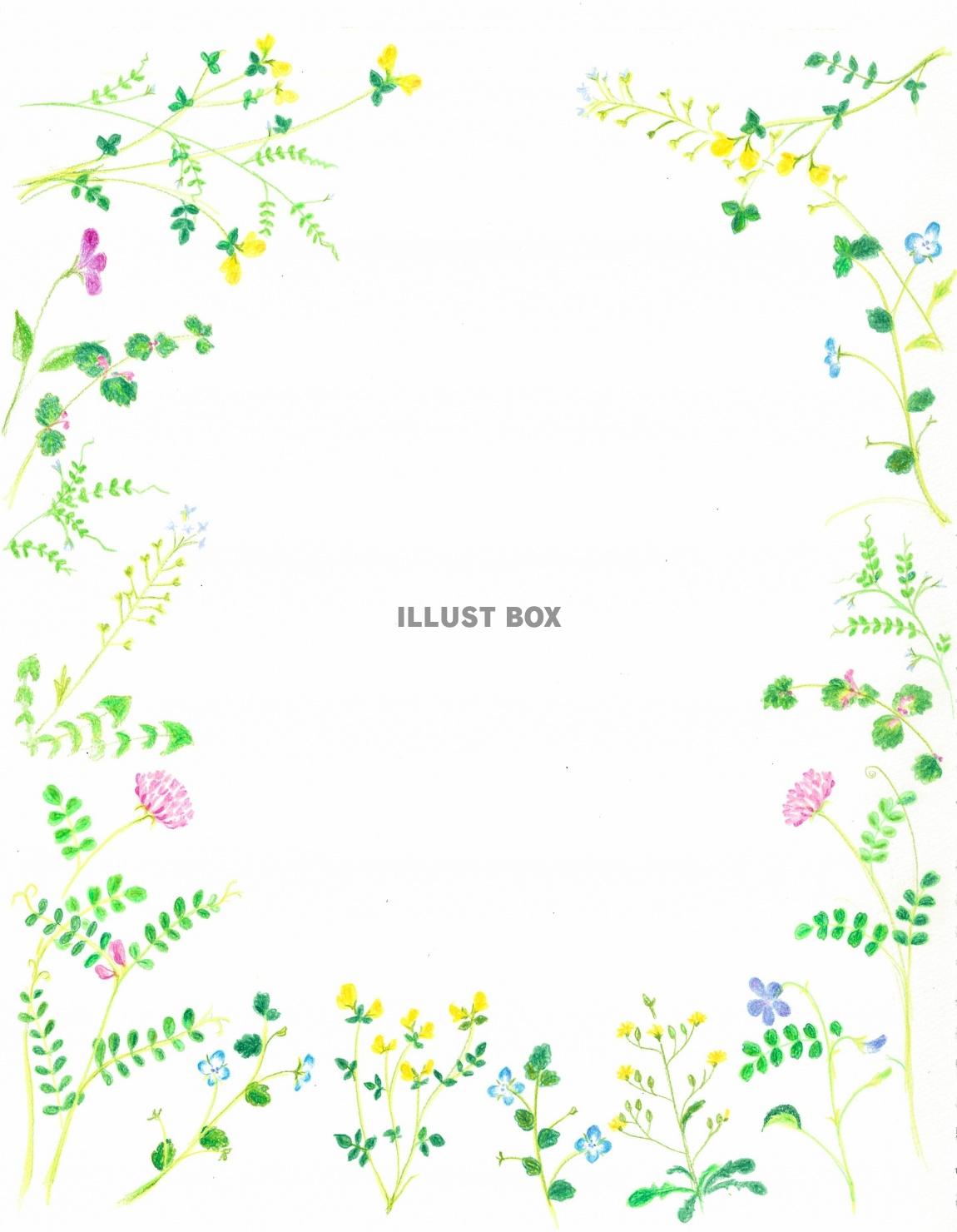 手書きのナチュラルかわいい草花柄の囲みフレーム。A4横 メモ・便箋・メッセージカードなどに無料イラスト素材TemplateBox。