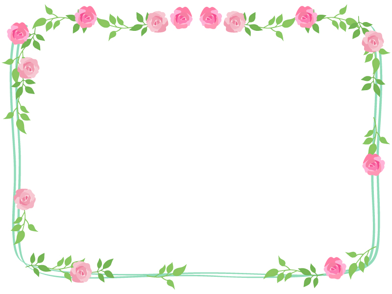 フリー素材:飾り枠;グリーンの薔薇の花と葉っぱの飾り枠;640×480pix無料素材とwebデザイン・DTP・動画制作 tigpig。
