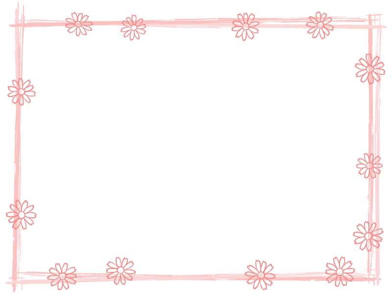 花と筆線のピンク色囲みフレーム飾り枠イラスト無料イラスト かわいいフリー素材集 フレームぽけっと。