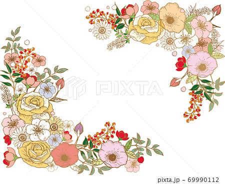 おしゃれな手書きの花のフレーム素材のイラスト素材69990112- PIXTA。
