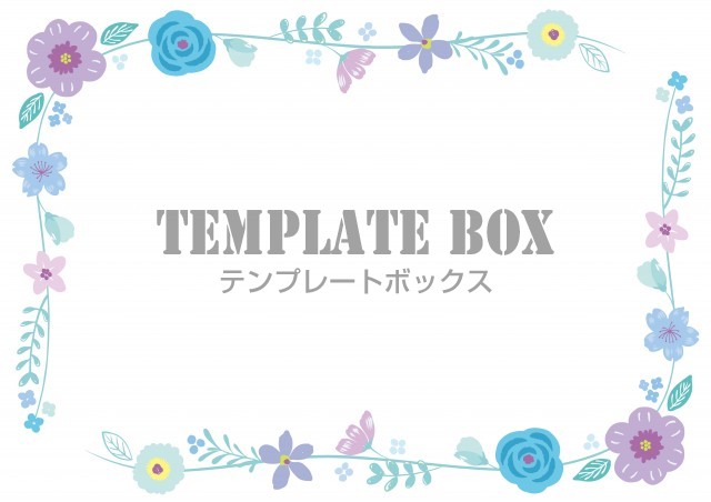 便箋やメッセージカードに♪クールカラーのお花フレーム a4横 掲示物やお知らせなどにも。無料イラスト素材TemplateBox。