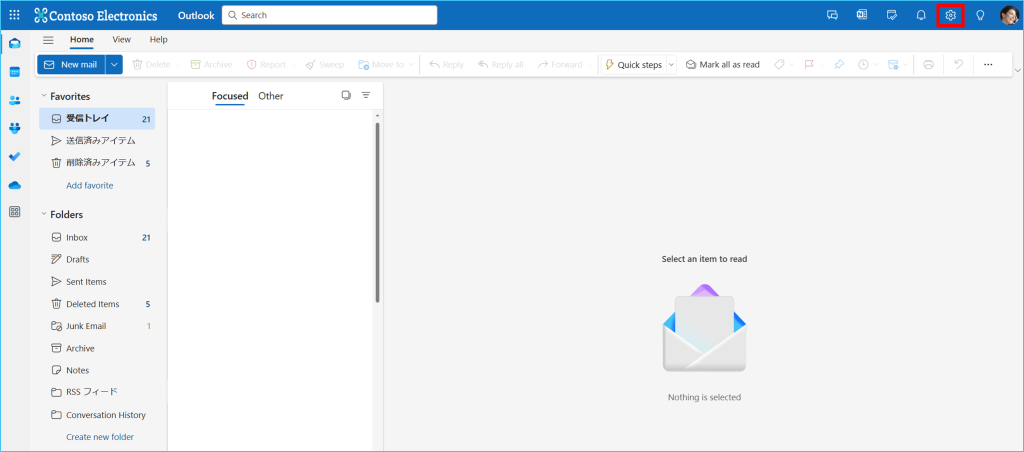 Web版のOutlook OWA で一部または全てのフォルダ名が英語表記になっているので日本語表記に変更したいです。NTTドコモビジネスお客さまサポート。