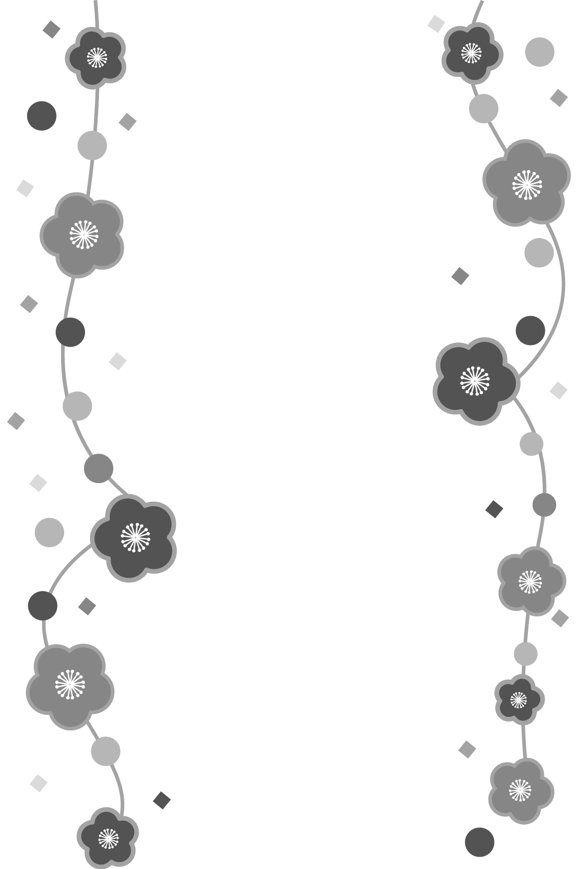 2月・梅の冬の花フレーム素材 縦型・透過・白黒・お便り・写真・誕生日 のテンプレートとなり。