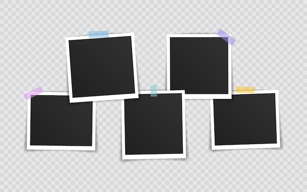 フォトフレーム 。透明な背景に粘着テープにスーパーセットのフォトフレーム。ベクトルイラスト。Premiumベクトル素材。