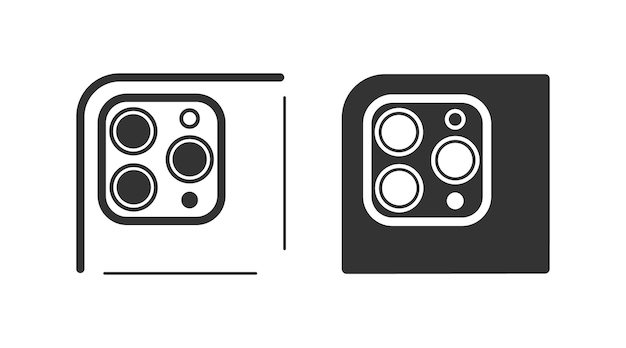 スマホ カメラ アイコン レンズ フレーム スマホ イラスト 記号 サイン フラッシュ pnone ベクターPremiumベクトル素材。