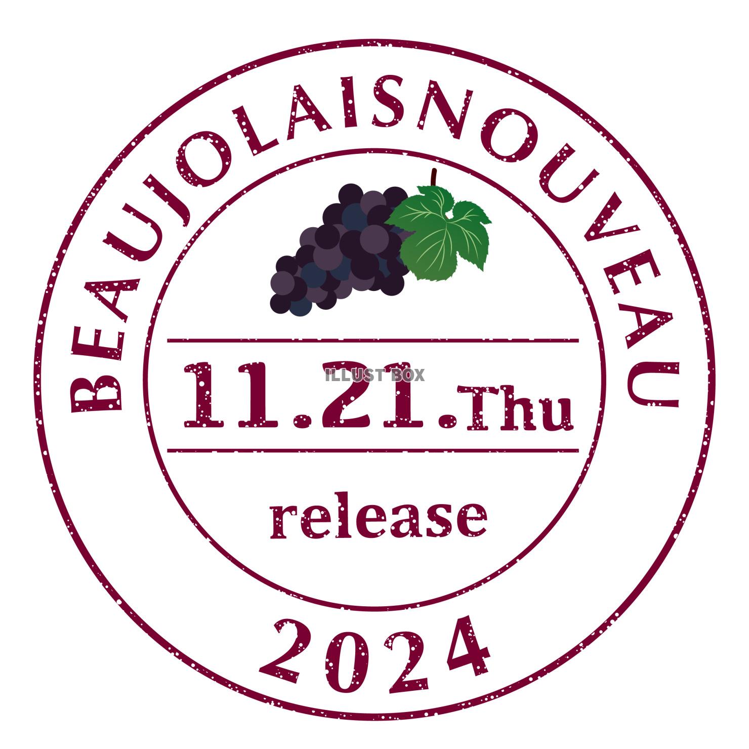 2024年ボジョレーヌーボーのスタンプ風ロゴ かすれバージョン:イラスト無料。