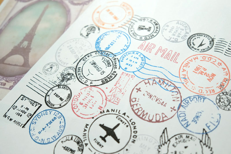 イミグレーションスタンプ風マステでなんちゃって消印デコくらざ。