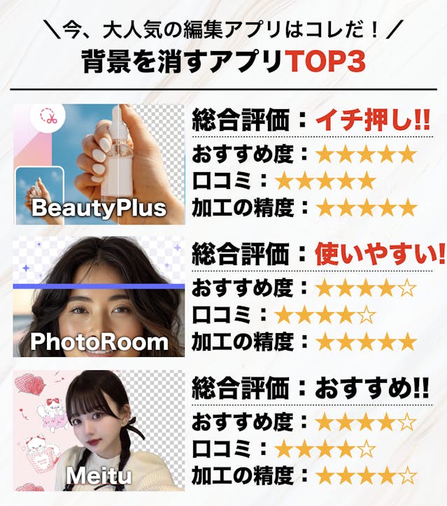 2022最新まとめ 写真の背景を消すアプリおすすめランキングTOP10。