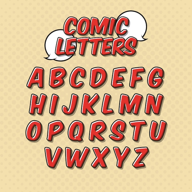 コミックフォントアルファベットポップアートPremiumベクトル素材。