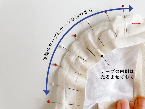 内カーブ バイアステープ縫い方のコツ 外カーブSMILEWORKS25。