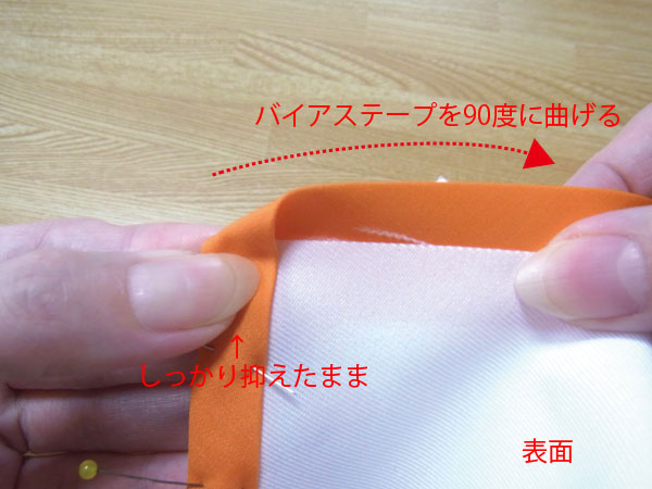 バイアステープ角の縫い方 凸凹角の処理方法hapimade手芸教室ハンドメイド・手作りのお手伝い。