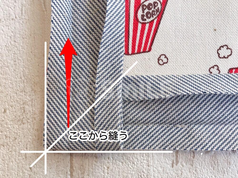 額縁縫い バイアステープ縫い方 角縫いSMILEWORKS25。