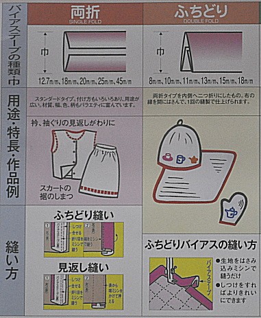 ☆バイアステープ☆ふちどりバイアステープと両折バイアステープの違い。