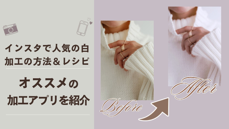 人気の白加工 を一番簡単にやる方法♡ 「フィルター」にある 「White」は 一発で白加工にしてくれるすぐれもの✨ Before→After で比べてみると ふんわりした雰囲気が可愛い一枚に📸🥺 白さの調節もできるので、お好みの濃さに合わせて使ってみてね。