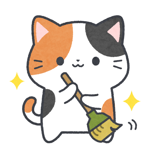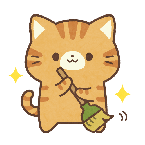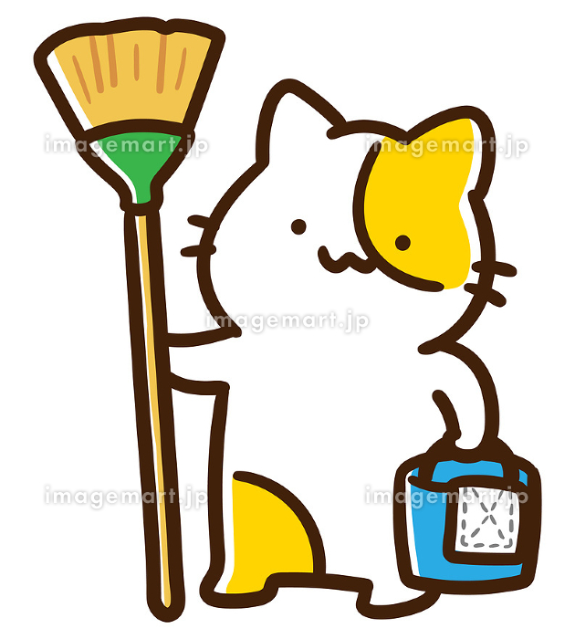 掃除する猫無料イラスト&かわいいフリー素材集 ねこ画伯コハクちゃん。