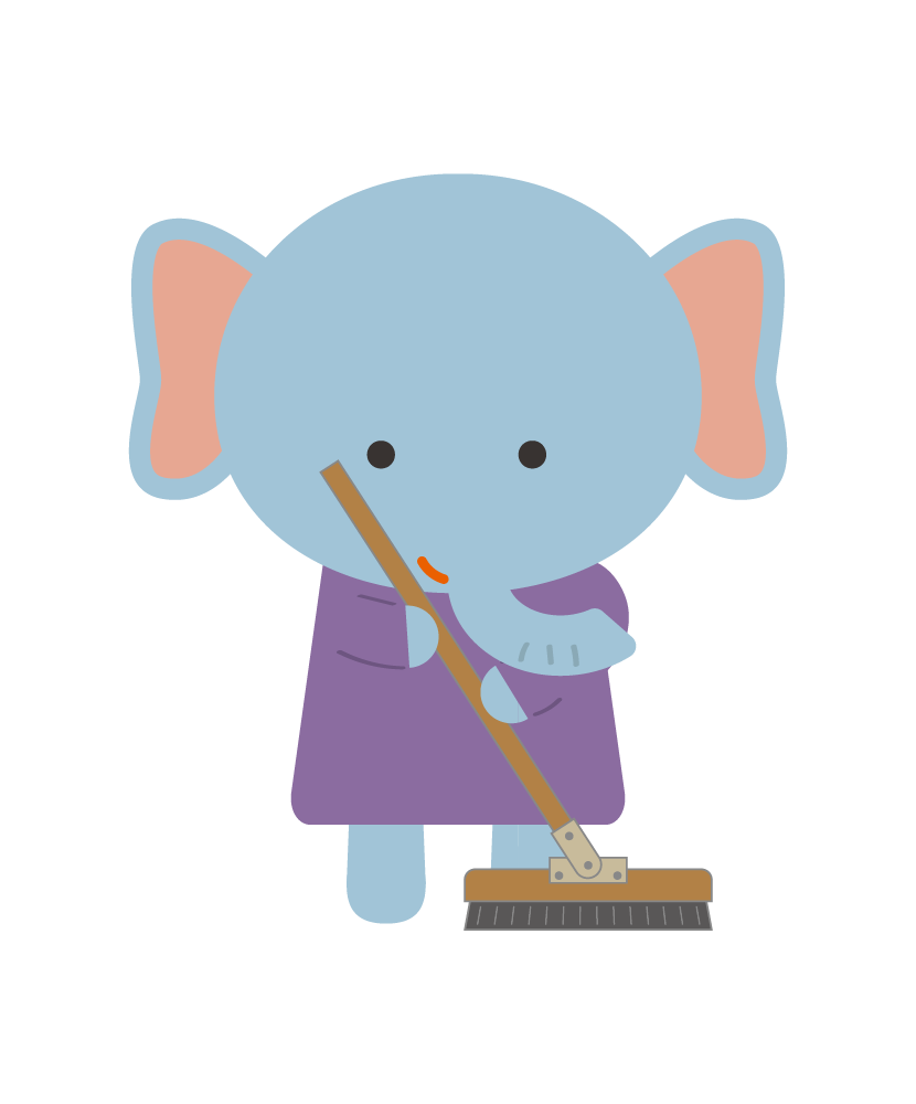 ほうきで掃除をしているぞうキャラクターのイラスト - 無料のイラストなら「いらすと・ごー」。