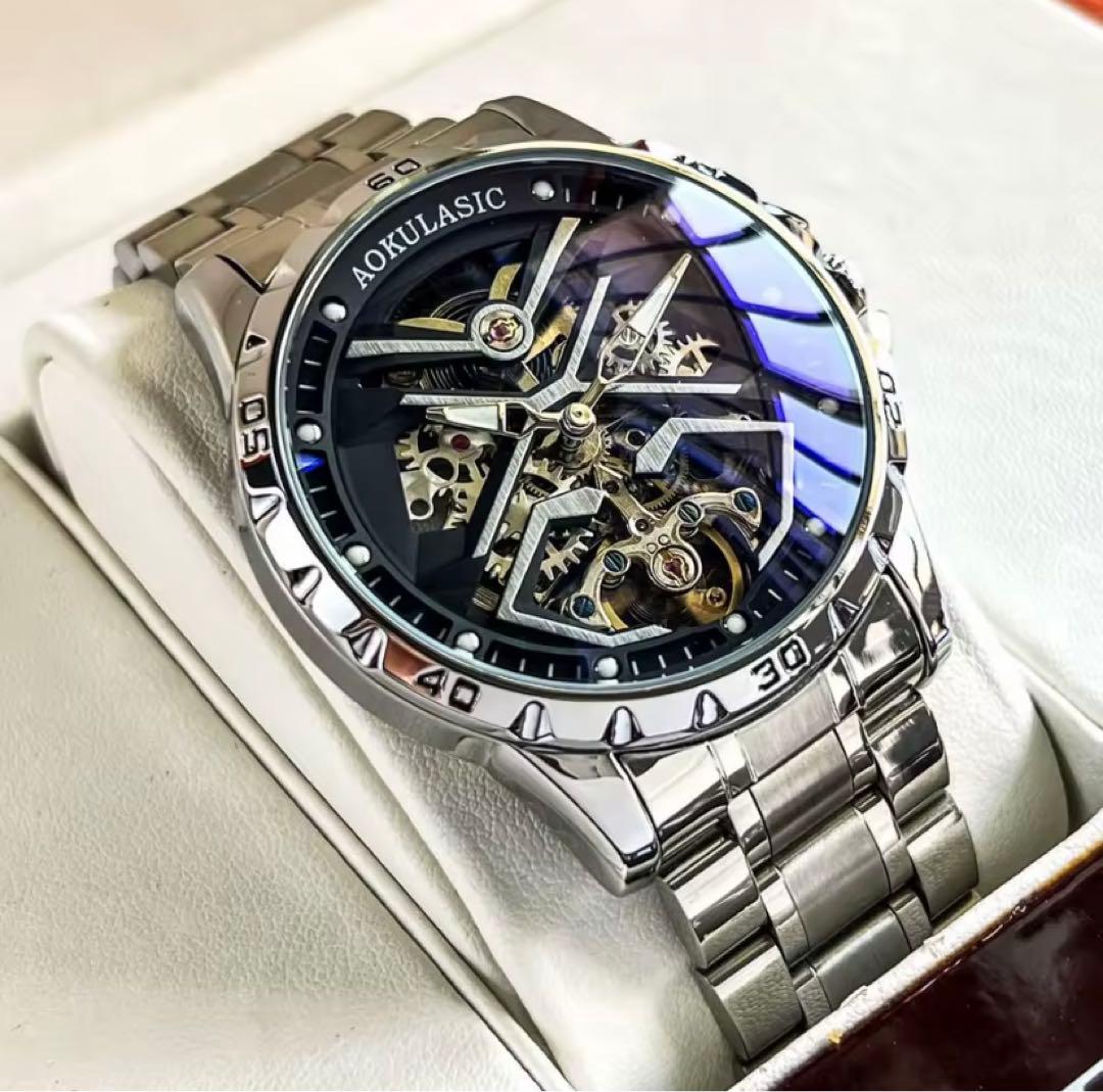 腕時計 自動巻き腕時計 OLEVS オールスケルトン 機械式腕時計 手巻き時計 メンズ ブランド メンズ腕時計 ハイクオリティ かっこいい おしゃれデザインウォッチ 時計 大学生 男性用 シンプル 高級感 防水 ギフト プレゼント ウォッチ かっこいい時計 デザイン。