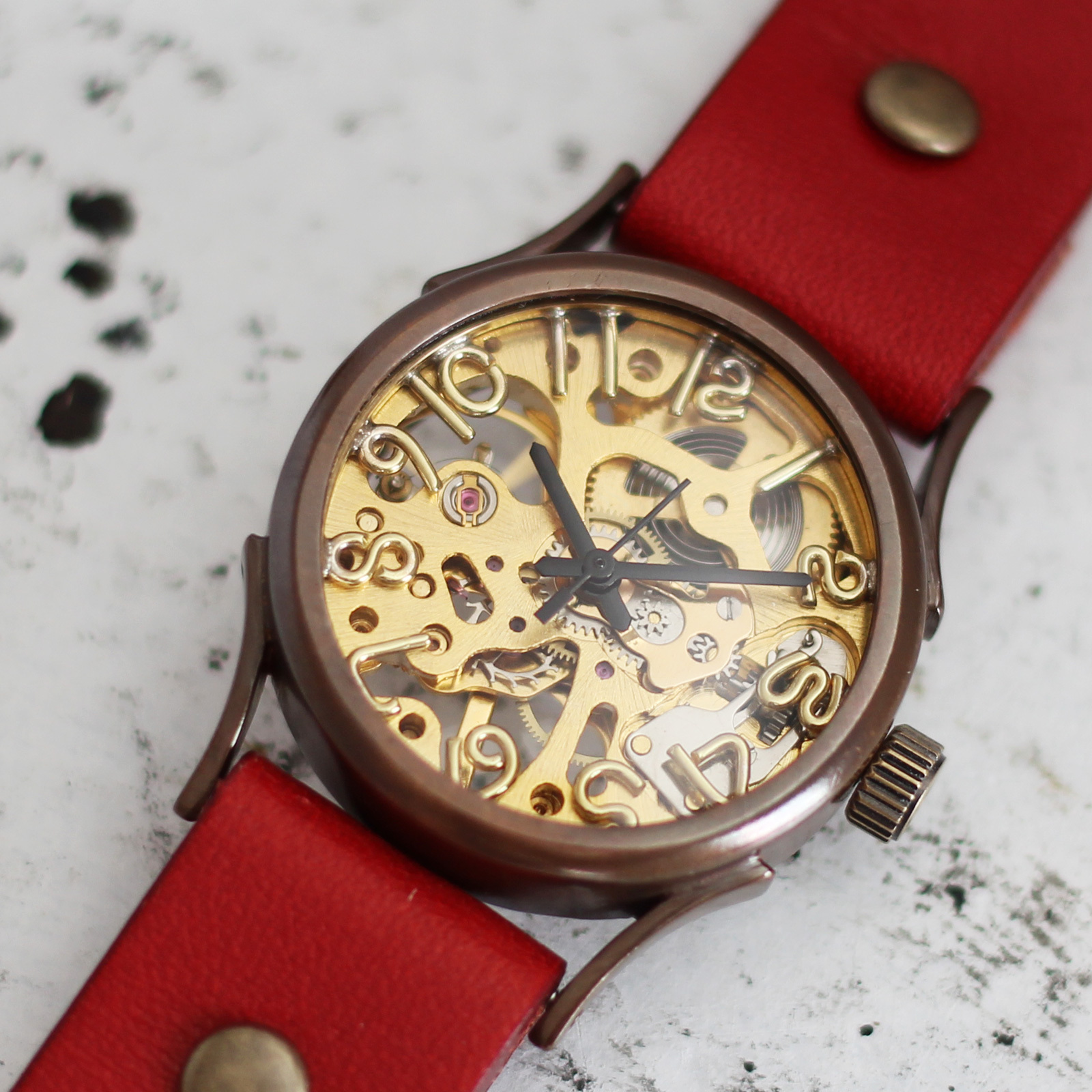 黄銅斗景3-2」日本製スケルトン機械式時計 手作り時計 文字盤2色 ベルトカラー6色 腕時計 DEDEGUMO 定休日:火・水曜日 通販15018337Creema クリーマ。