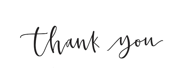 筆記体の書道フォントまたはスクリプトで書かれたありがとうの言葉やメッセージ。白い背景に手書きのエレガントなレタリング。スタイリッシュな装飾デザイン要素。モノクロのベクトル図。Premiumベクトル素材。