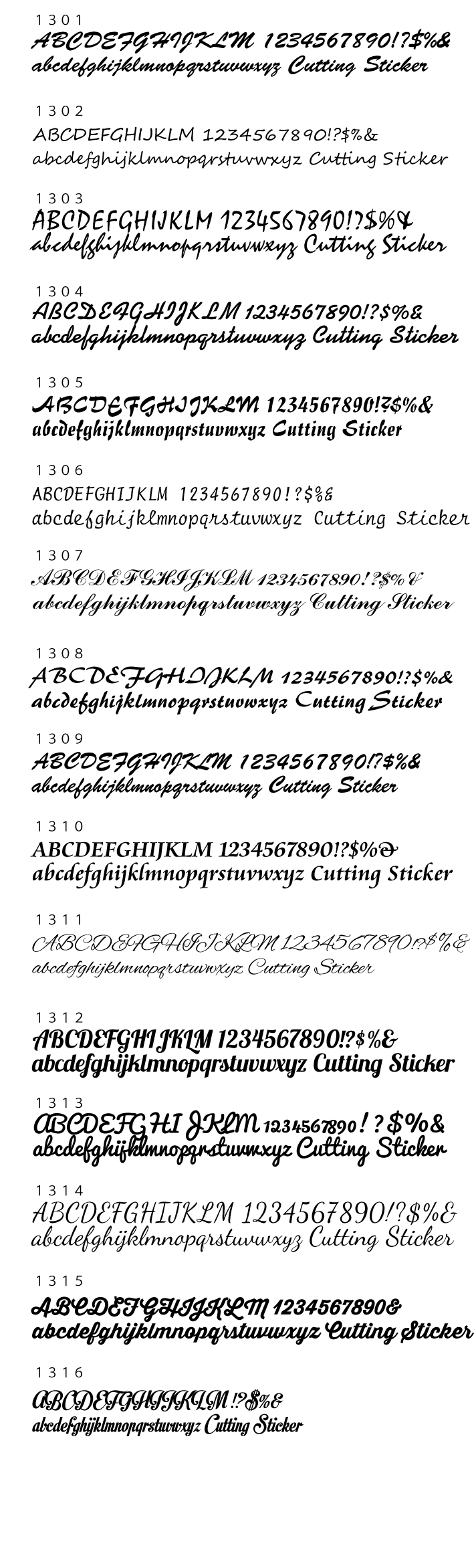 スクリプトフォント一覧ステッカーショップヒンメル。
