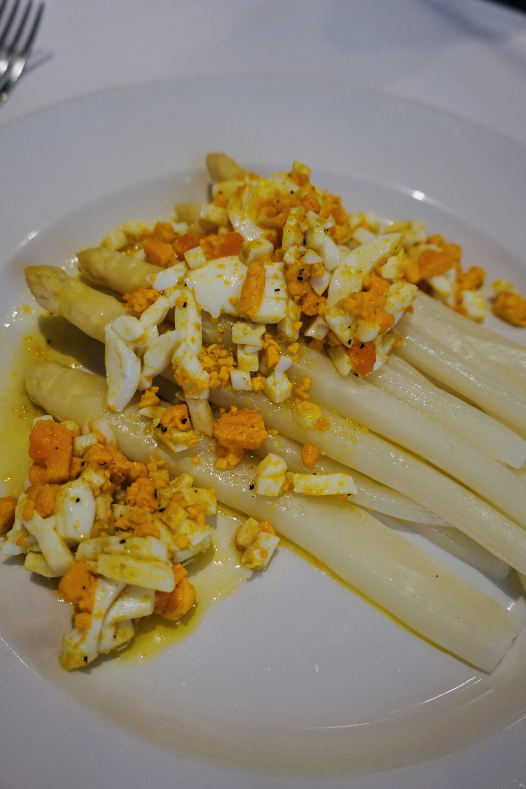 春先のヴェネトの名産、白アスパラガスと殻付き茹でタマゴたびこふれ。