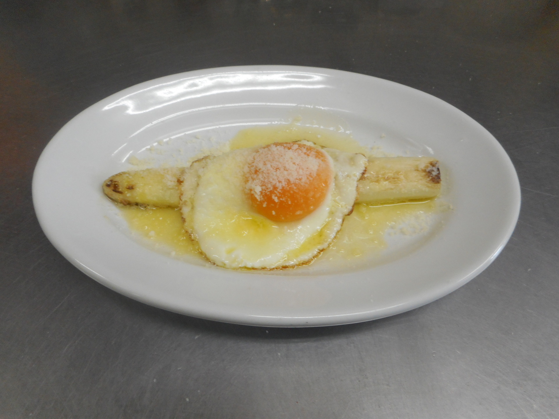 Bacaro&Pizzeria El Portegoイタリア春の定番料理☘️ホワイトアスパラガスのバッサーノ風じっくりアスパラの出汁でボイルしたアスパラをグリル、その後かけるソースはゆで卵がベースになっており、卵を崩した後、塩、ビネガー、オリーブオイルと合わせています。