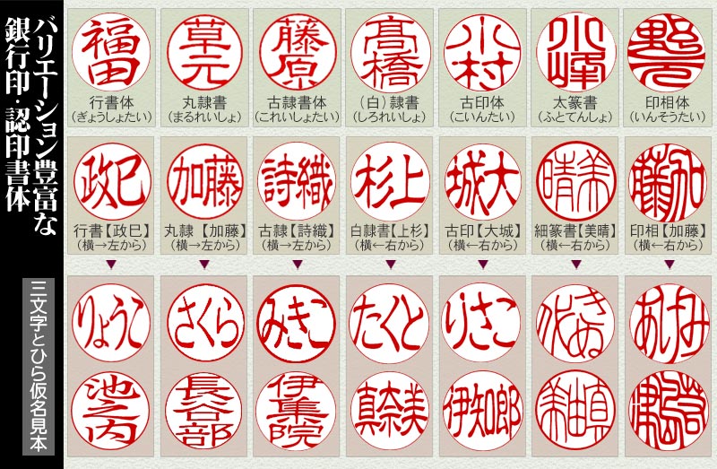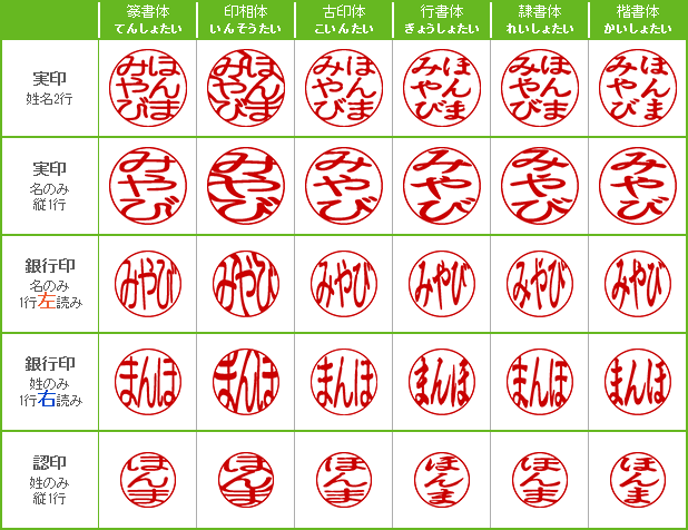 印鑑 書体の見本一覧印鑑・はんこ通販は20年保証・送料無料の印鑑市場。