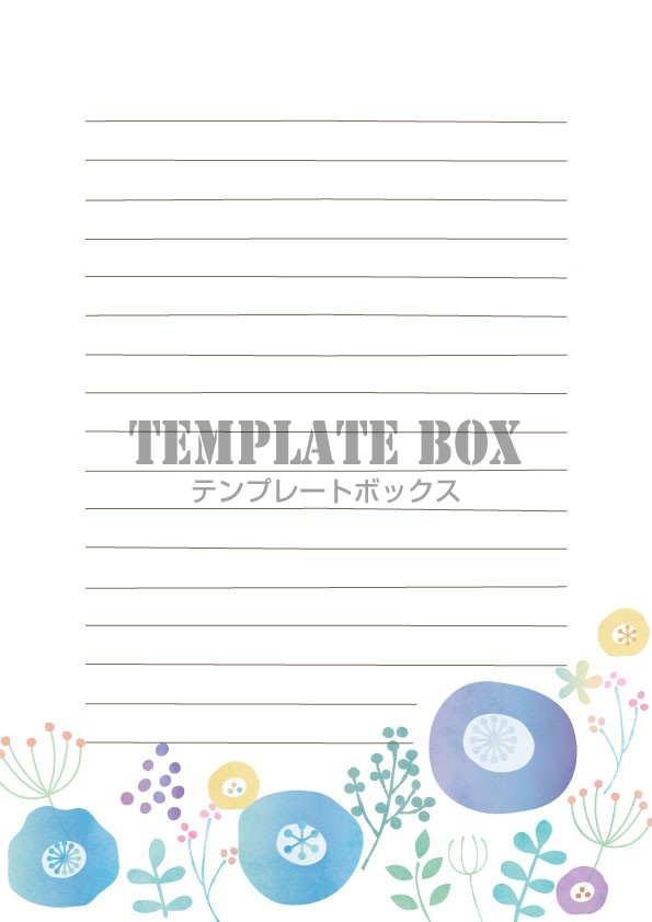 便箋テンプレート かわいい水彩風の花 A4・B5 JPG・PNG・PDF・word イラスト入りの素材無料テンプレートTemplateBox。