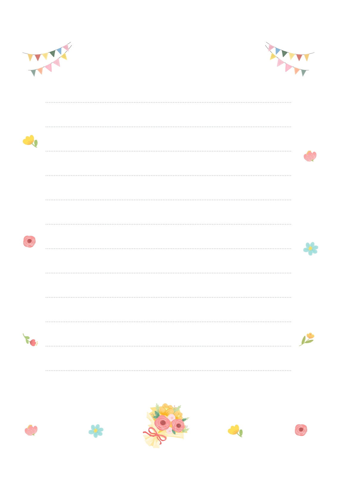 便箋 レターセットテンプレート イラスト かわいい小花♪商用フリー 無料 のイラスト素材なら「イラストマンション」。