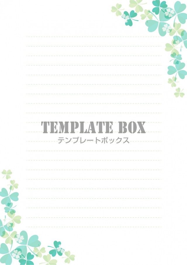 便箋 クローバーがおしゃれでかわいいデザイン横書き便箋テンプレート 自然・植物・ナチュラル系 シンプルな素材無料テンプレートTemplateBox。