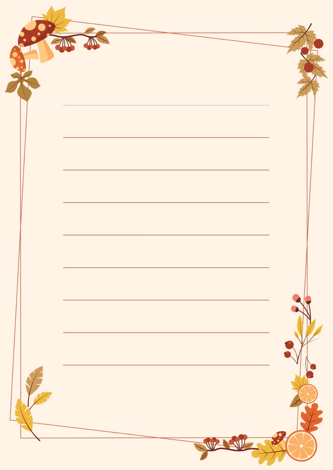 便箋 紅葉の季節モミジとどんぐりかわいい便箋 自然・植物・ナチュラル系 素材・横書き、無料ダウンロード無料テンプレートTemplateBox。
