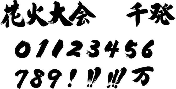 数字のフォントの筆文字無料毛筆筆文字フリー素材でロゴ、和デザイン、年賀状制作、美文字。