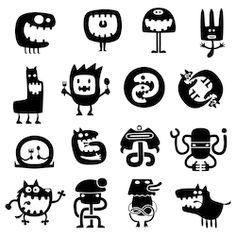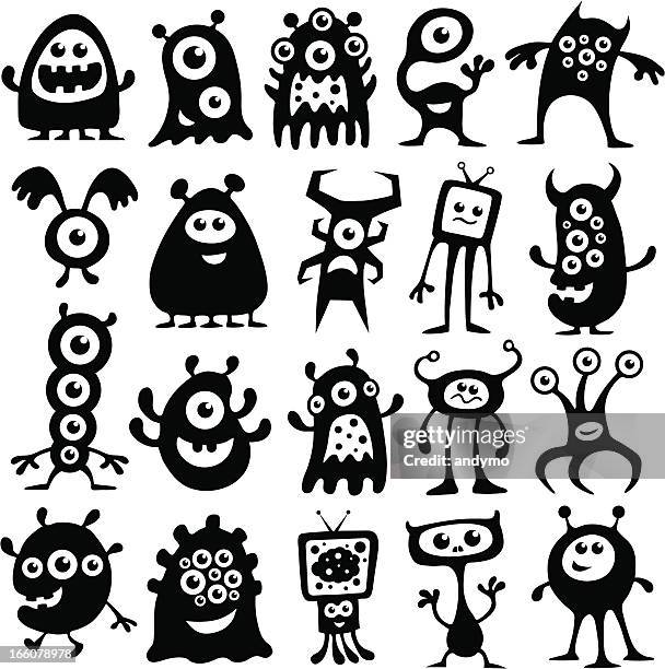 モンスターアイコンセット - ベクター画像のベクターアート素材や画像を多数ご用意 - ベクター画像, モノクロ, 宇宙人 - iStock。
